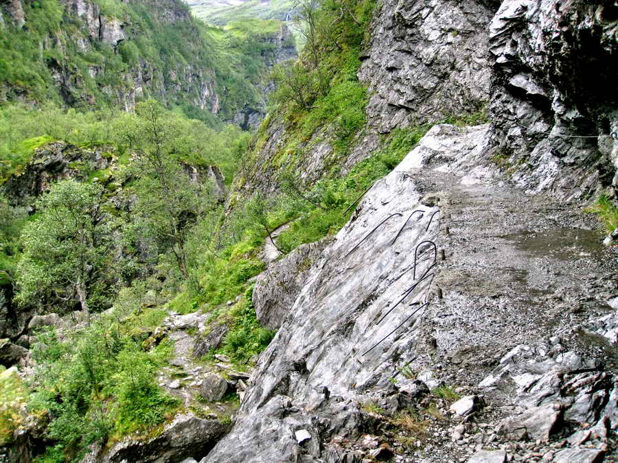 Her er det sprengt ut en sti i fjellet.