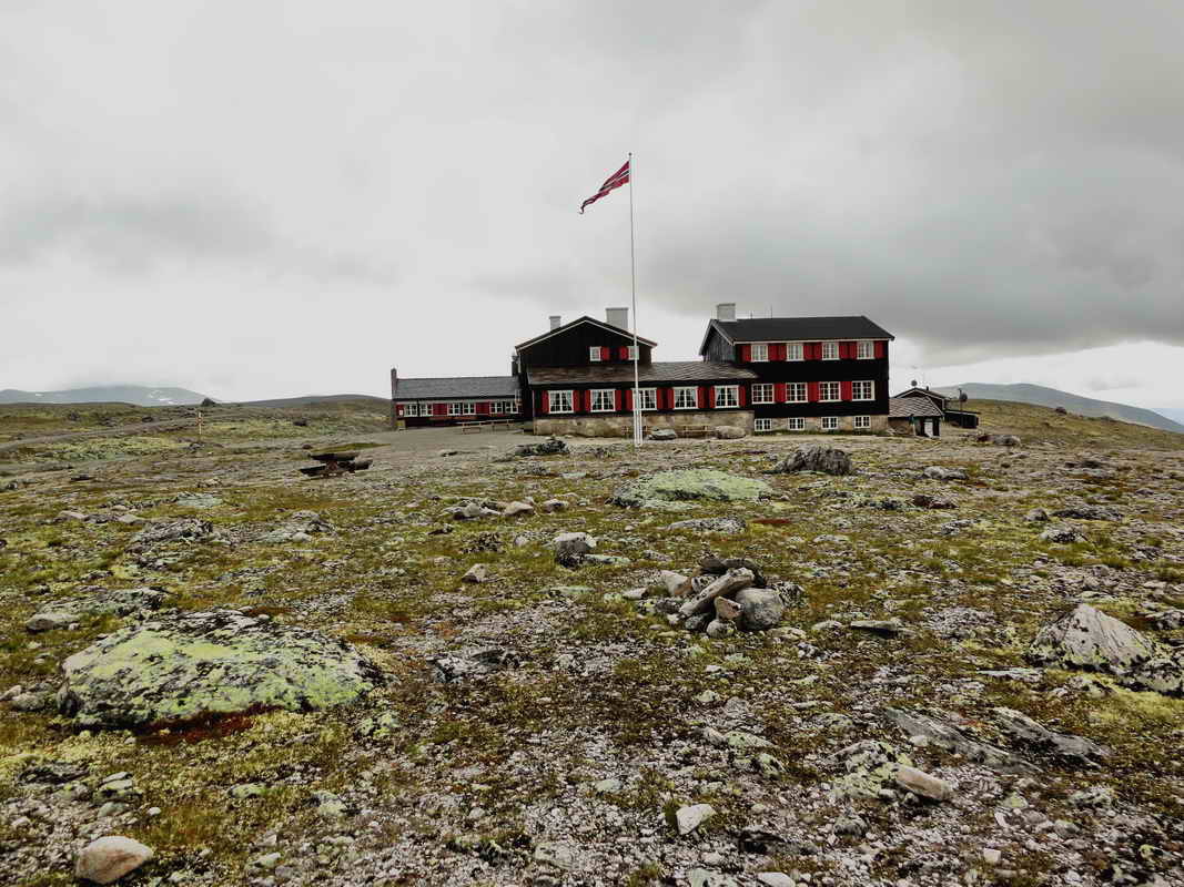 Her forlater jeg Snøheim for å gå til Åmotdalshytta. Det er litt ustabilt vær.