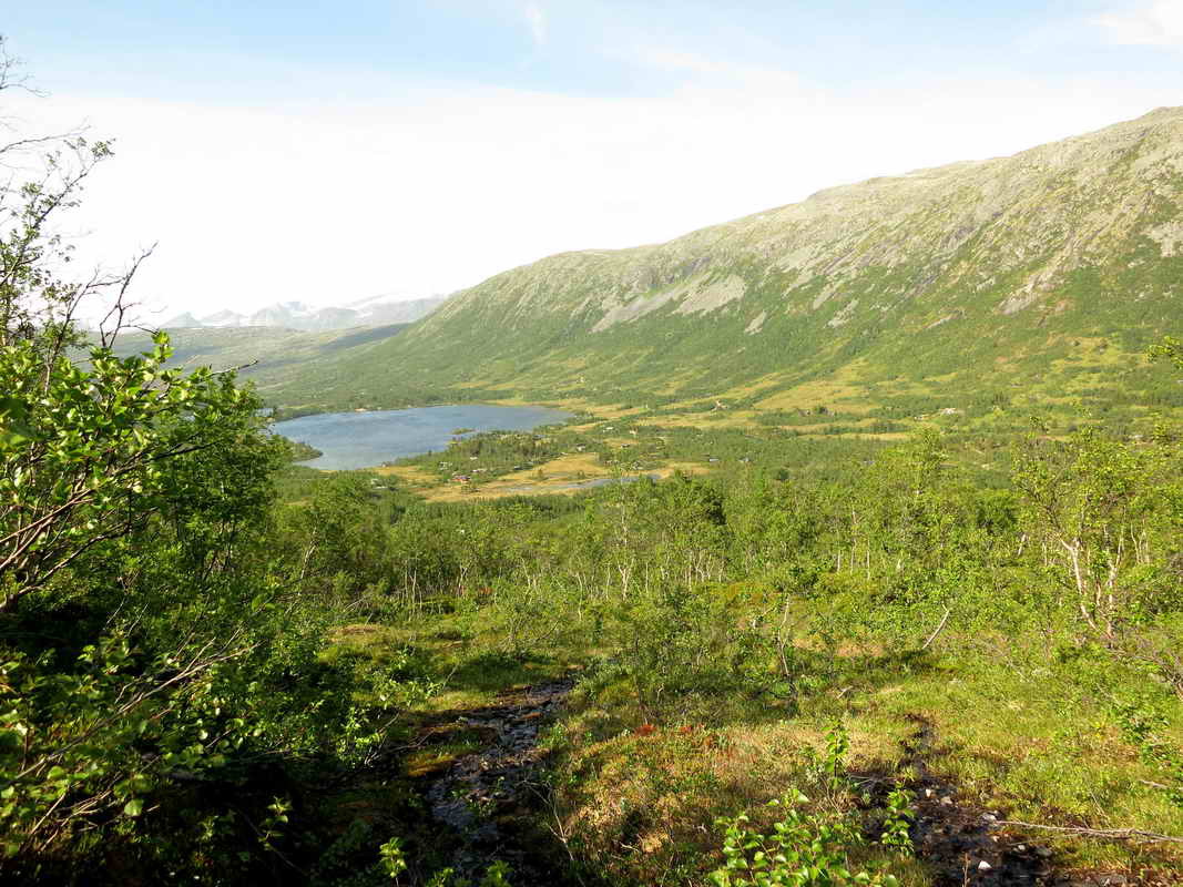 Her ligger Vangshaugen ute på en odde i Storvatnet.