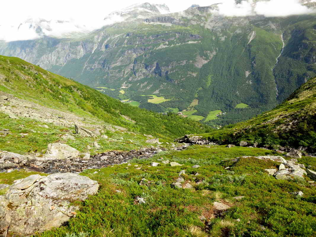 Eiriksvollen ligger på andre siden av veien, til venstre bak gården vi ser der nede.
