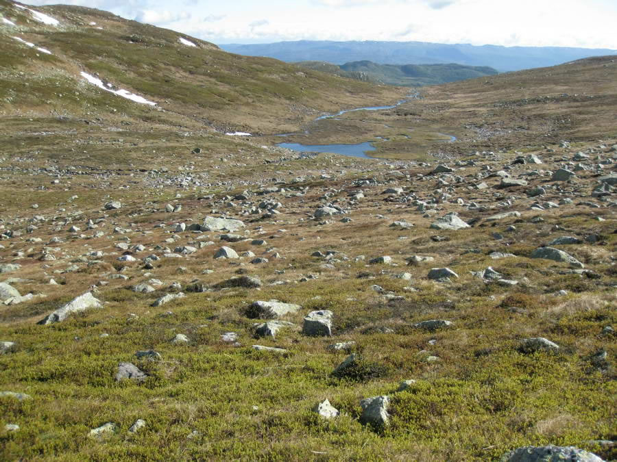 Ned mot Fagerlibekken. Den renner ned til Gulsviksætran