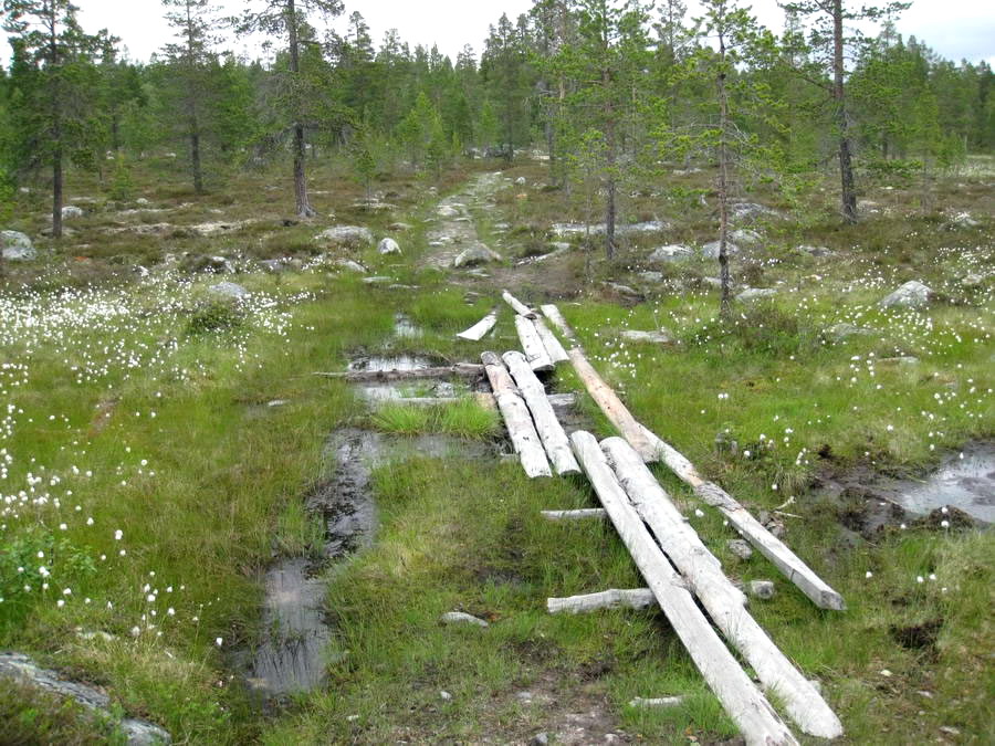 Her er det lagt noen stokker over myra