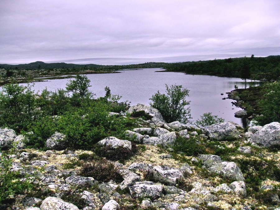 Ser tilbake på vannet. Det er overskyet men fint å gå