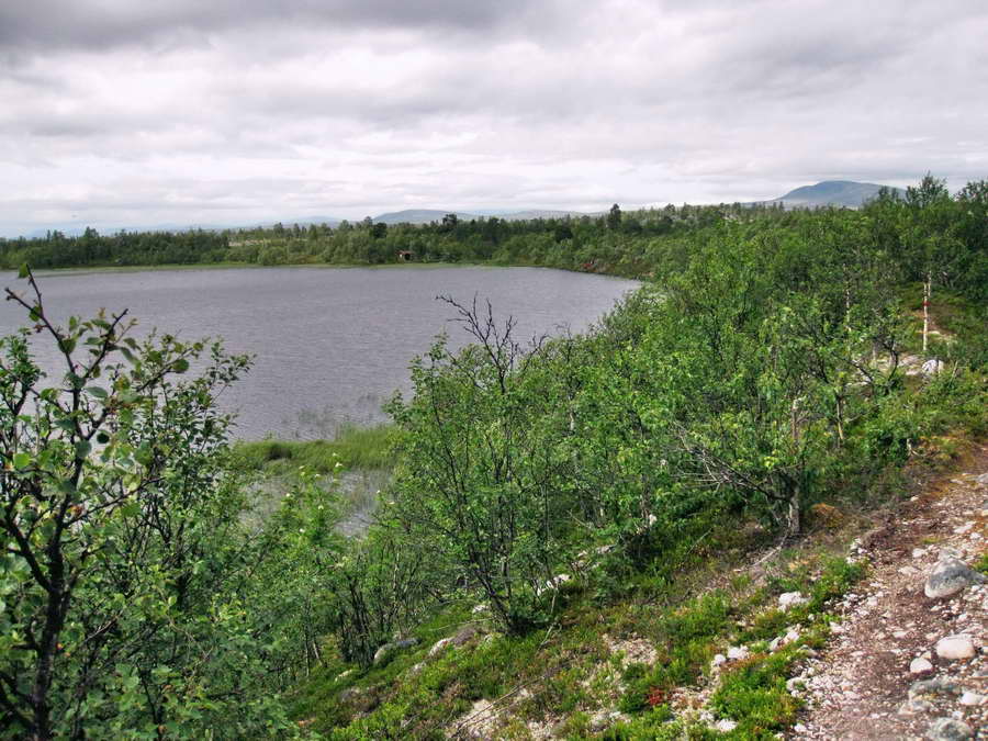 Her går jeg på en slik morenerygg. Ca.10-15m høy og bevokst med bjørkeskog