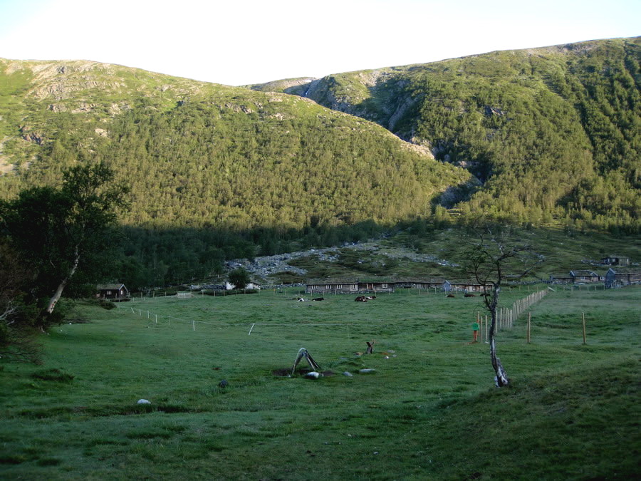 Her ser en hvor jeg skal opp idag. Til venstre for elva Indre Tverråa som renner ned i kløften i fjellet. Det er 420m opp.