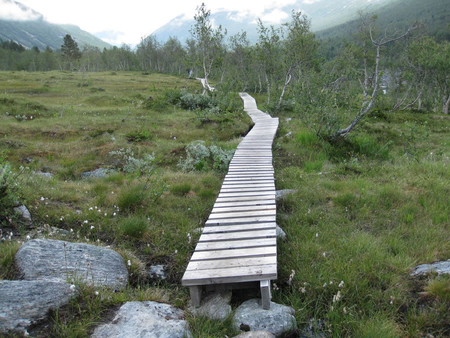 Det er laget fine klopper for å gå over myrene her