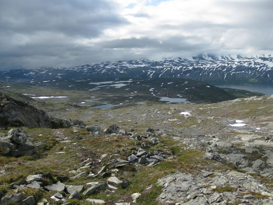 Klokken er 10.10 og jeg kan se ned mot Breidalsvatnet ved Grotli. Til høyre i bilde