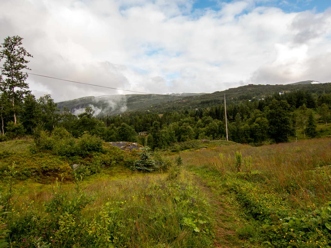 Skal opp fjellet midt i bilde.