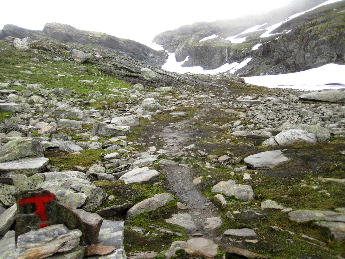 Skal opp på snøfeltet midt i bilde.