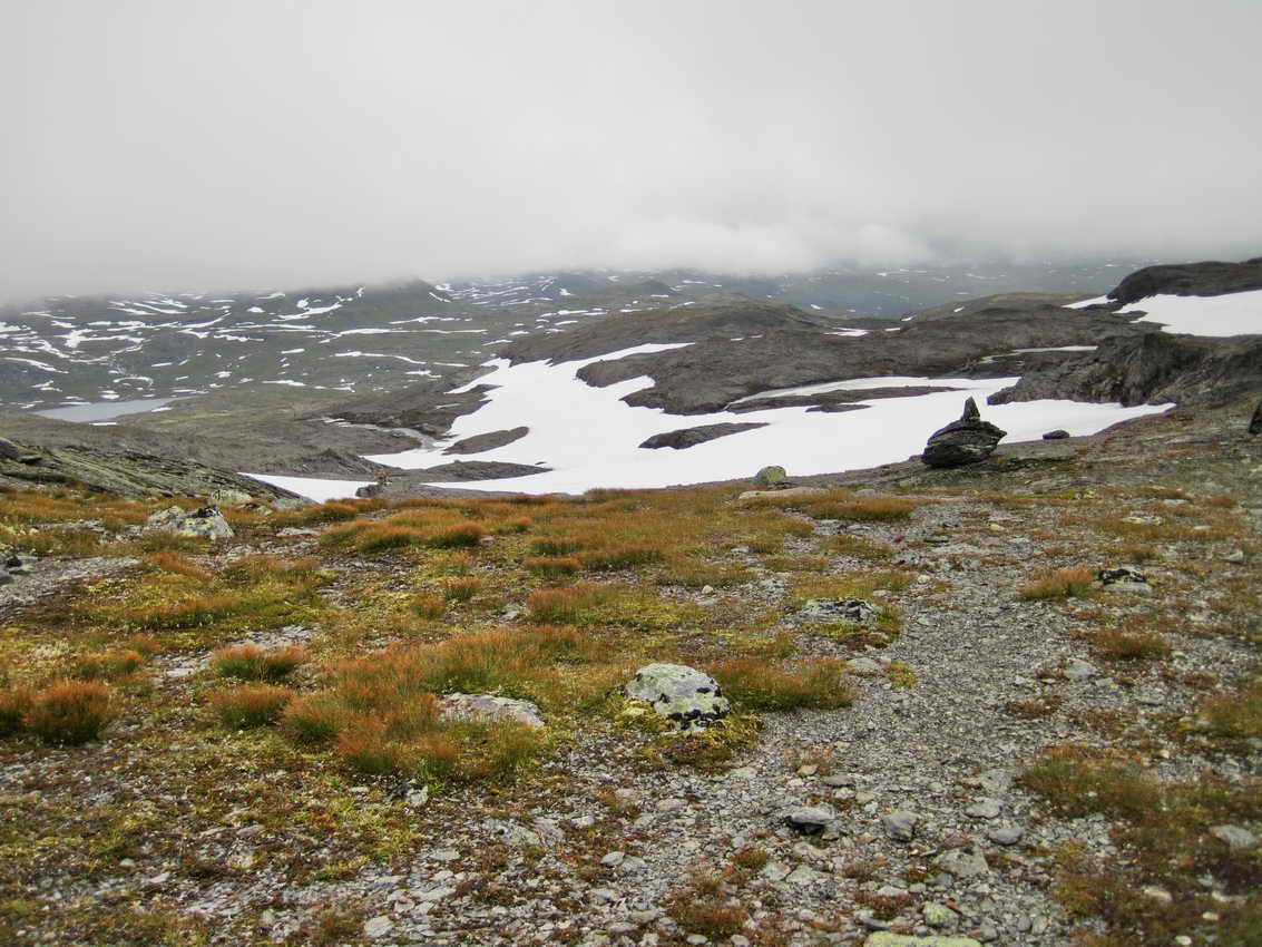 Er på toppen. Nå går det nedover mot Finsevatnet. Vannet til venstre er Sandåvatnet.