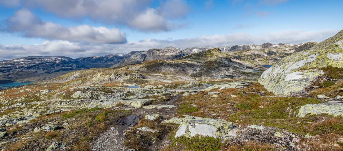 Ser tilbake på stien jeg gikk opp. Mannvasstjønn helt til høyre og Store Nup midt i bilde. Er snart oppe på Veslenup.