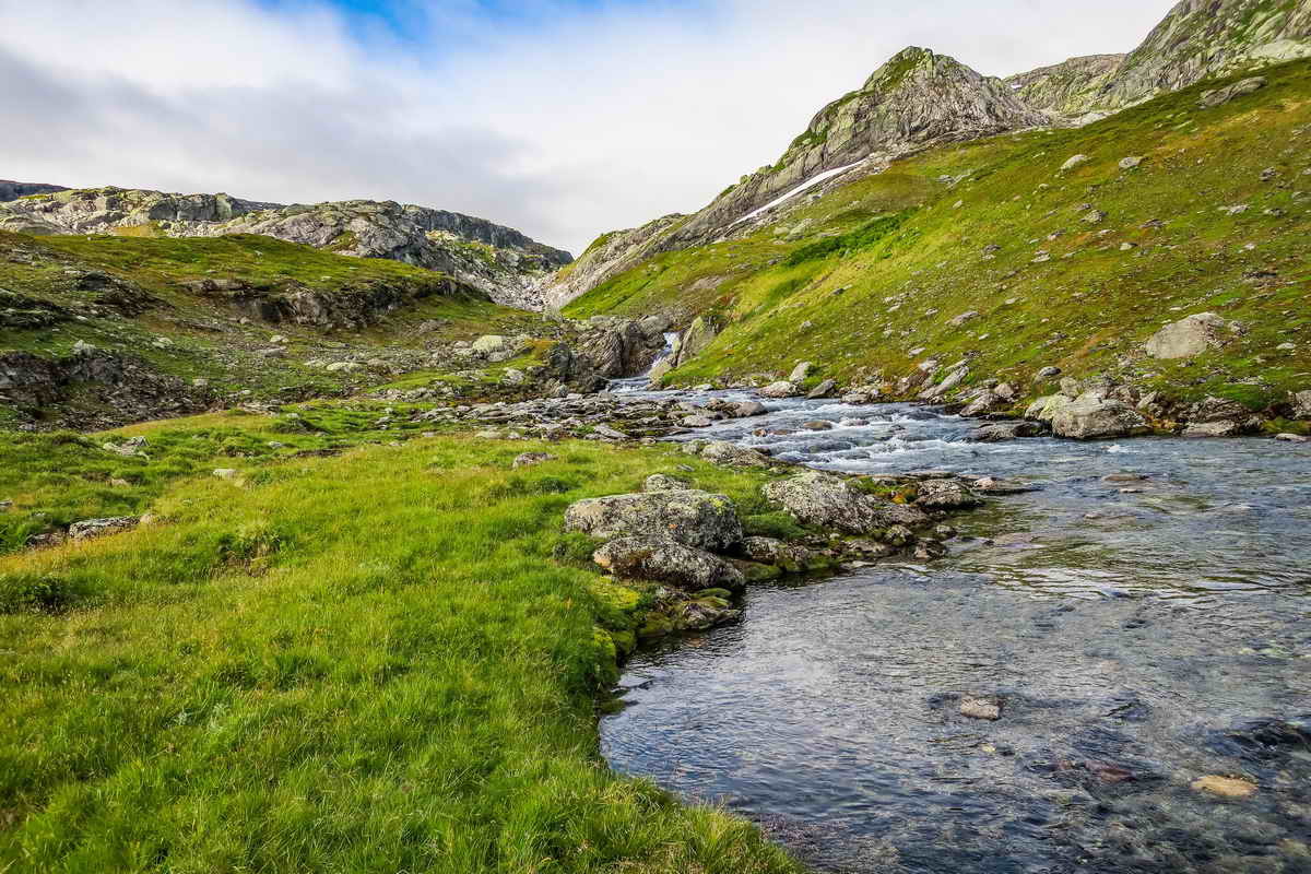 Kom på venstre side av elva her. Måtte hoppe over på steinene. Ble litt bløt.