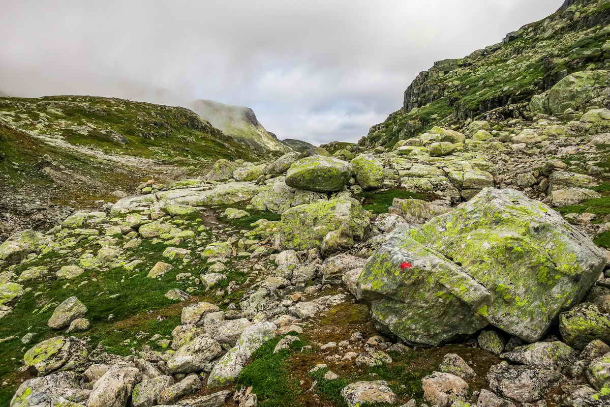 Her er jeg på toppen, og nå vil det gå mest nedover. Klokken er 10.30 og jeg har snart gått i 4,5 time.