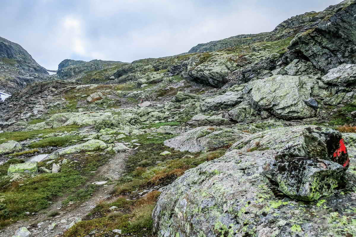 Det flater ut på toppen. Skal til det lille feltet med snø der oppe.