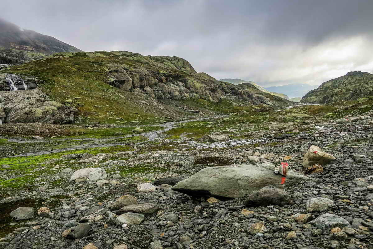 Satt og spiste på høyre side her. Jeg mistet rødmerkingen litt. Skal over bekken.