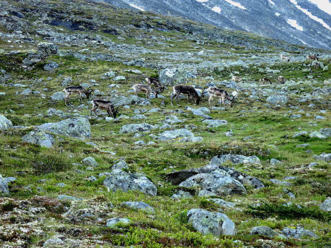 Har begynt å gå opp i Urdadalen. Her var det mye tammrein.