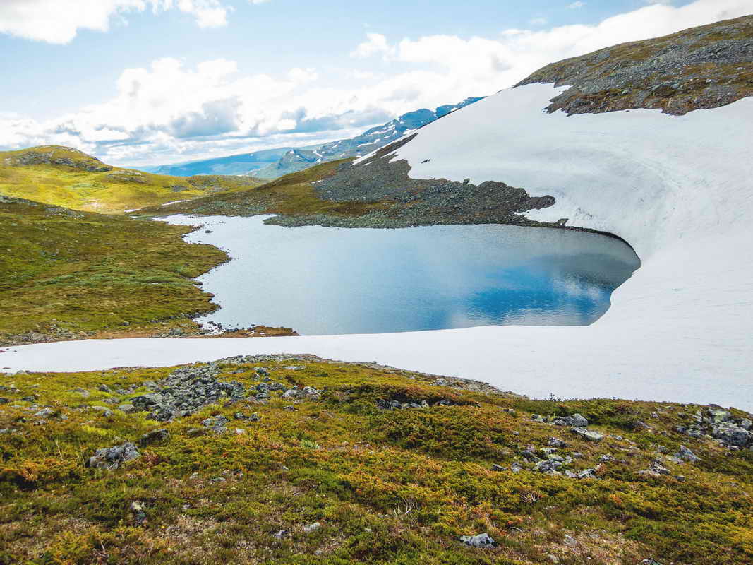 Her var det en skikkelig snøskavel ned mot vannet her.