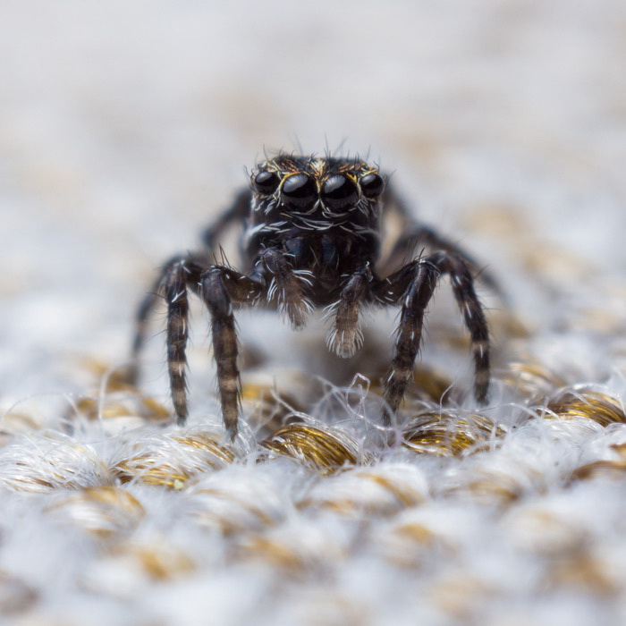 Bilde av 2mm lang Hoppeedderkopp. Objektiv reversert Rodenstock Rogonar-S 25mm enlarger.