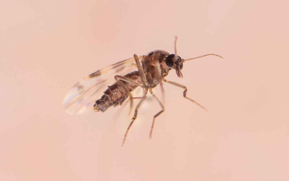 Bilde av 1mm lang Sviknott (Culicoides). Bildene er tatt med en reversert Pentax Takumar-A 28mm F2.8.