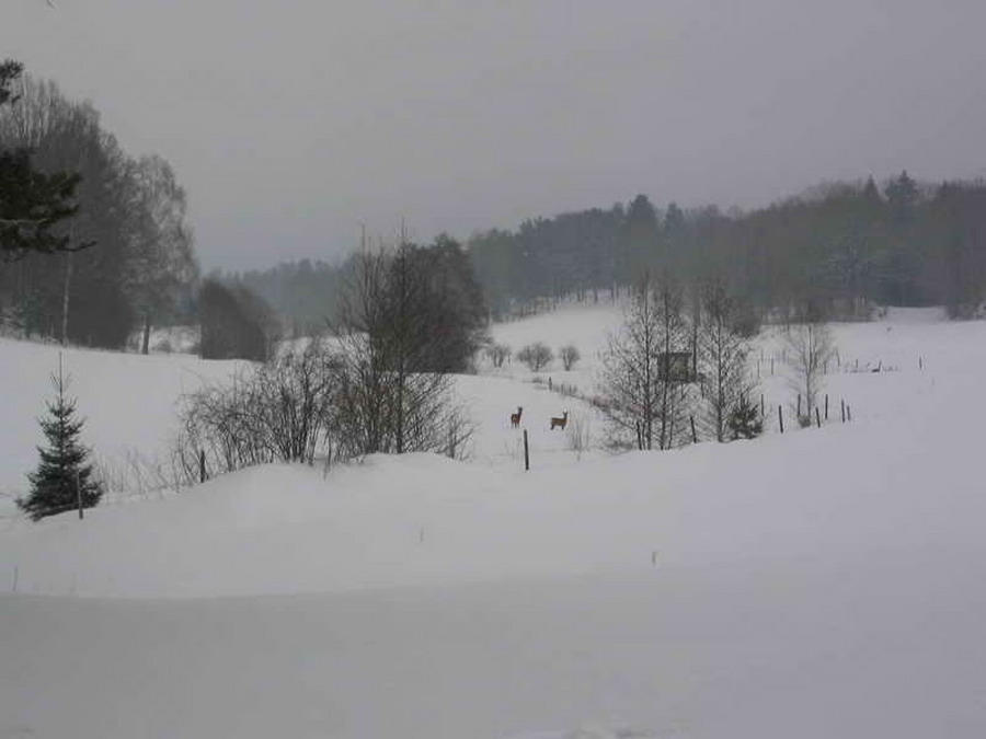 To rådyr på siden av løypa.. Det er 17. Februar og snøen begynner å bli råtten.