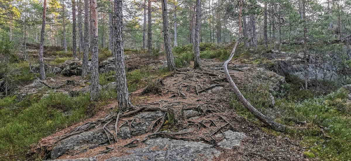 22. januar. Det er ikke noe snø igjen. Mye fururøtter å gå i.
