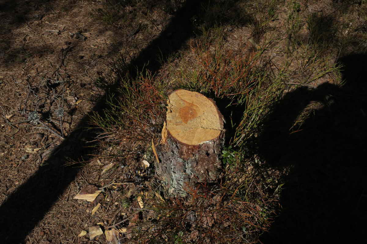 22. april. Her har de saget ned et tre ved Måsatjern på Tomåsan. Det er ille.