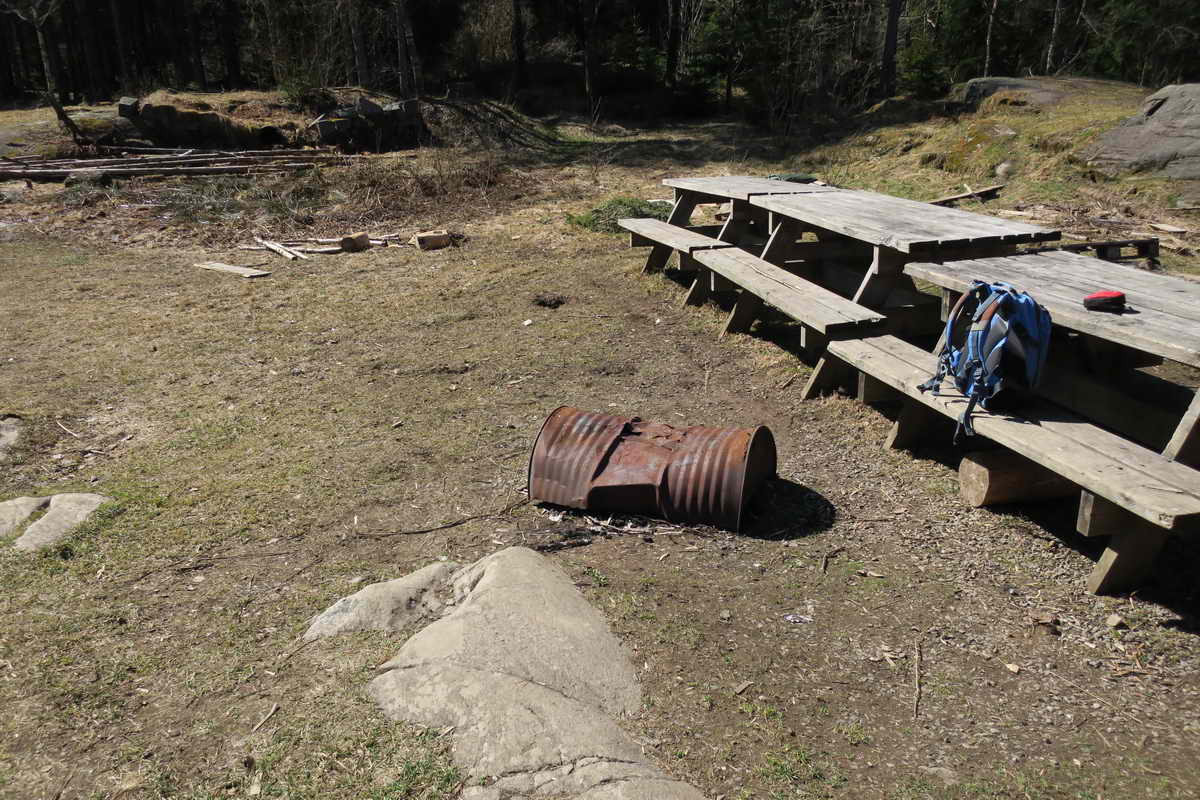 Det var veldig mye søppel rundt speiderhytta. Rusten tønne og paller lå strødd rundt. Rydd opp etter dere speidere!