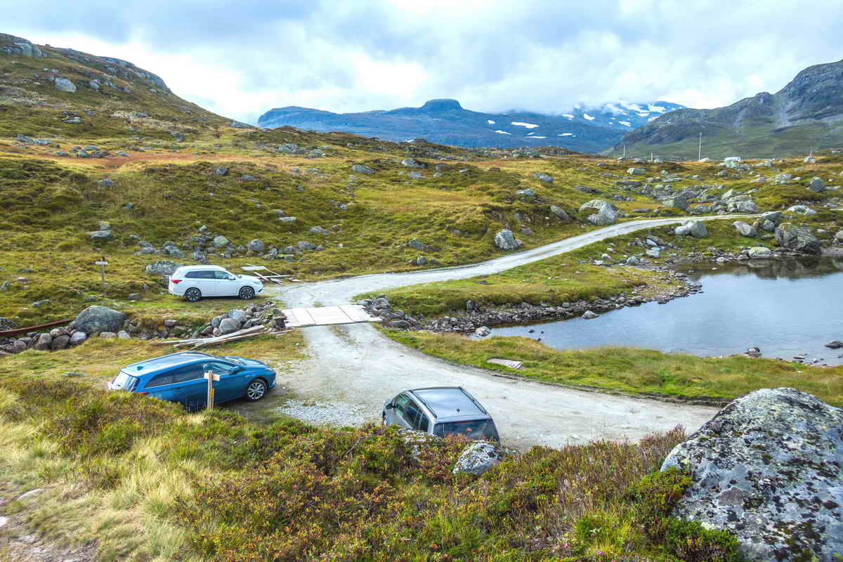 Her har jeg parkert ved Ulevå. 5 min. kjøring fra Haukeliseter.