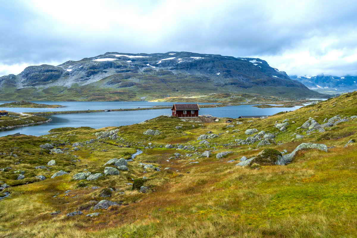 Har begynt å gå, og ser ned på setra Ulevå.