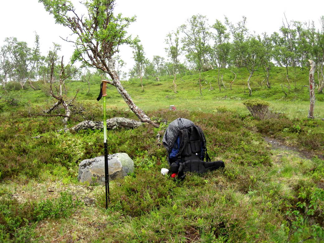 Her spiser jeg i regnværet, og det er kaldt på fingrene.