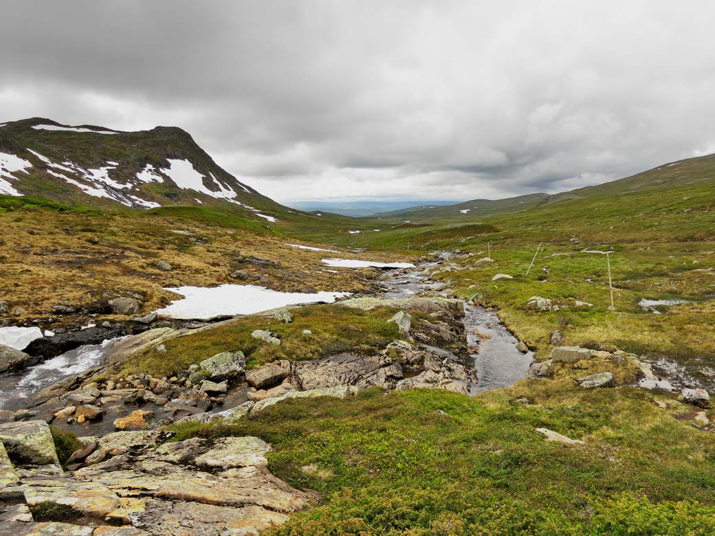 Nå begynner det å gå nedover Ramskardet. Triknatten på 1017m.o.h til venstre.