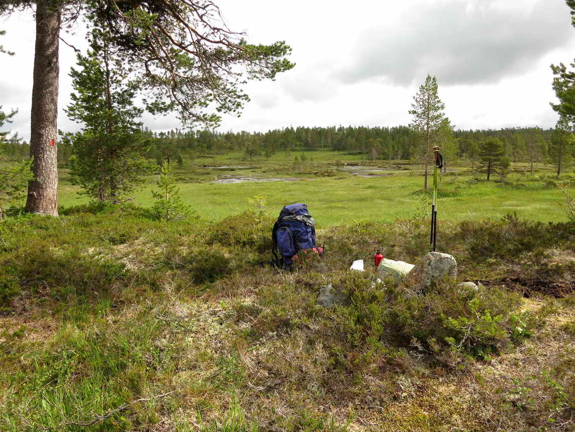 Her har jeg funnet en liten øy ute i myra og sitter og spiser her.