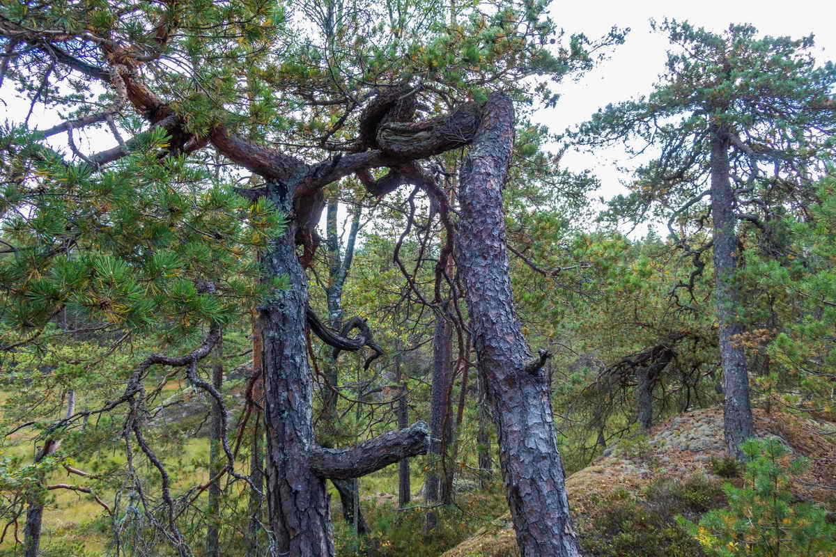 Her er det 2 furuer som ovn favner hverandre. Eller slåss de.