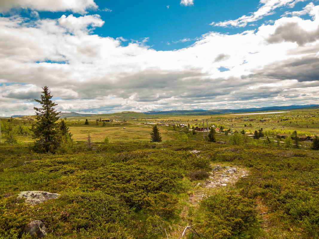 Has started to go up against Flaksjølihøgda and look back where I started and to Spidebergseter