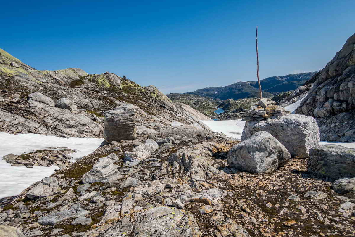Then red-marked stones protrude from the snow.