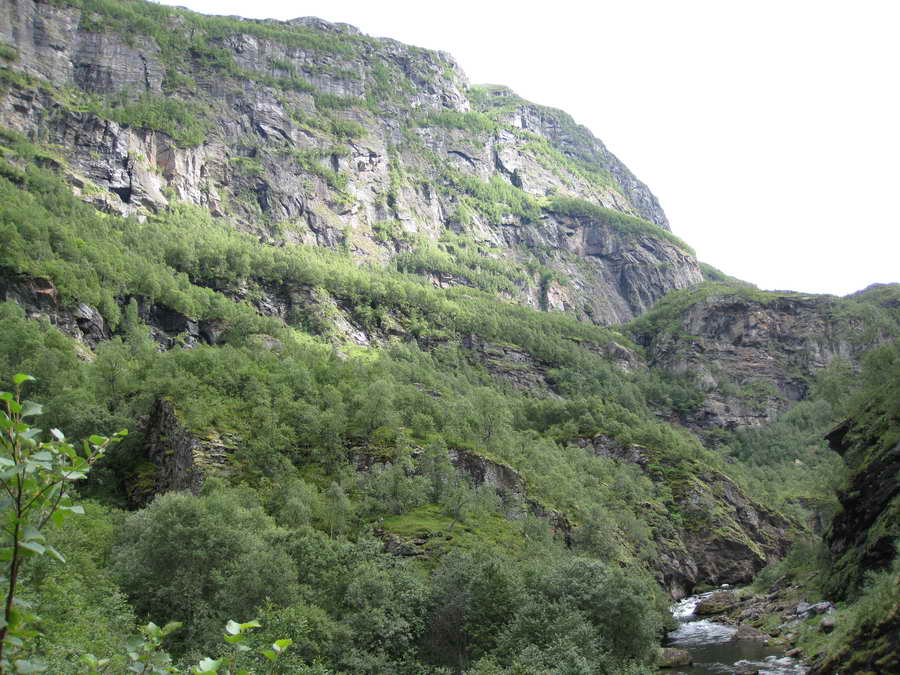 Her gikk stien på en hylle i fjellet, også tilbake og ned til elva