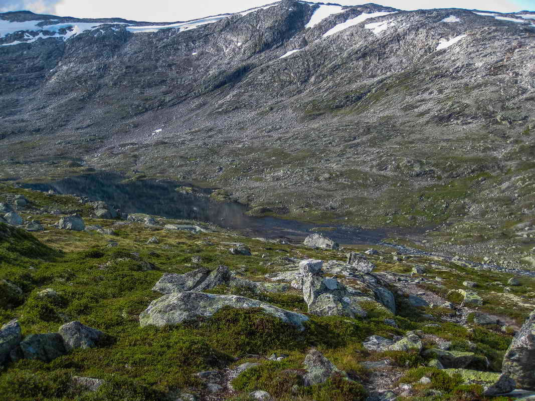 Her ser jeg ned på Greindøla og vann 1188. Det har gått nedover 312m
