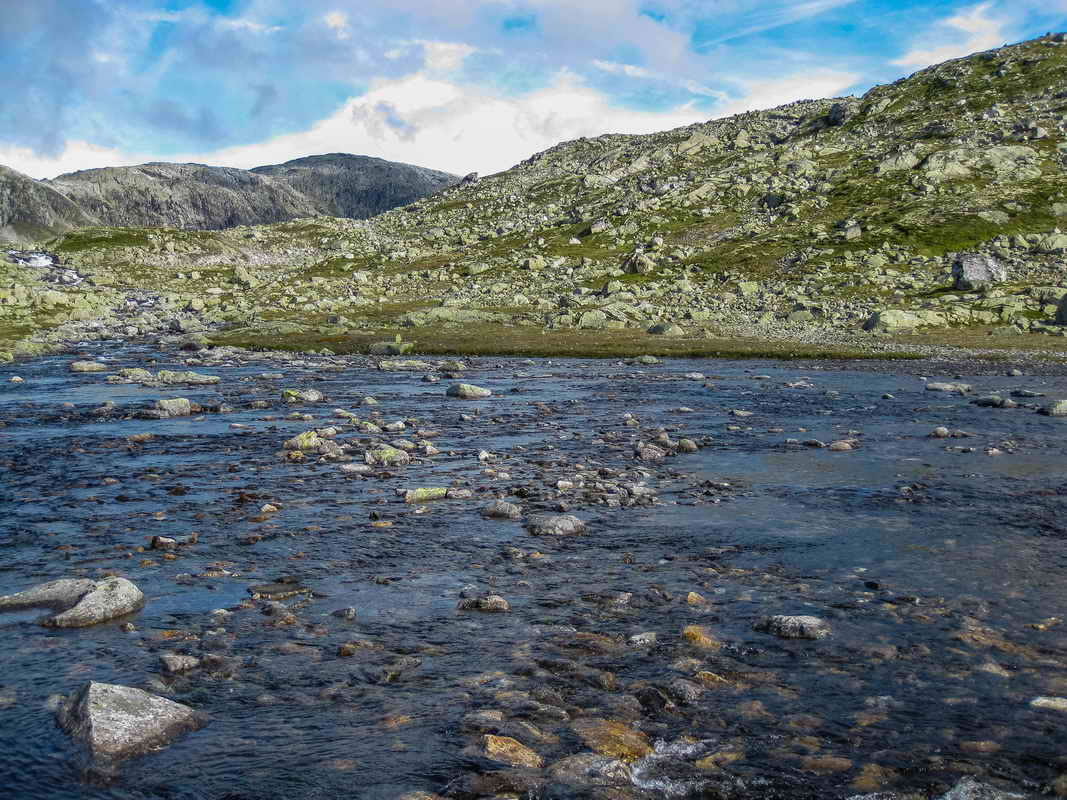 Her skal jeg over. Hopper fra stein til stein og det går bra