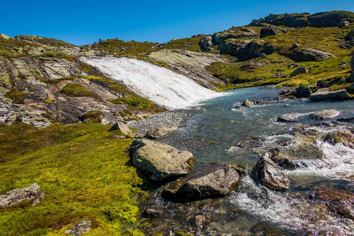 Fin foss i elva Løndala som kommer fra Harbardsbreen.