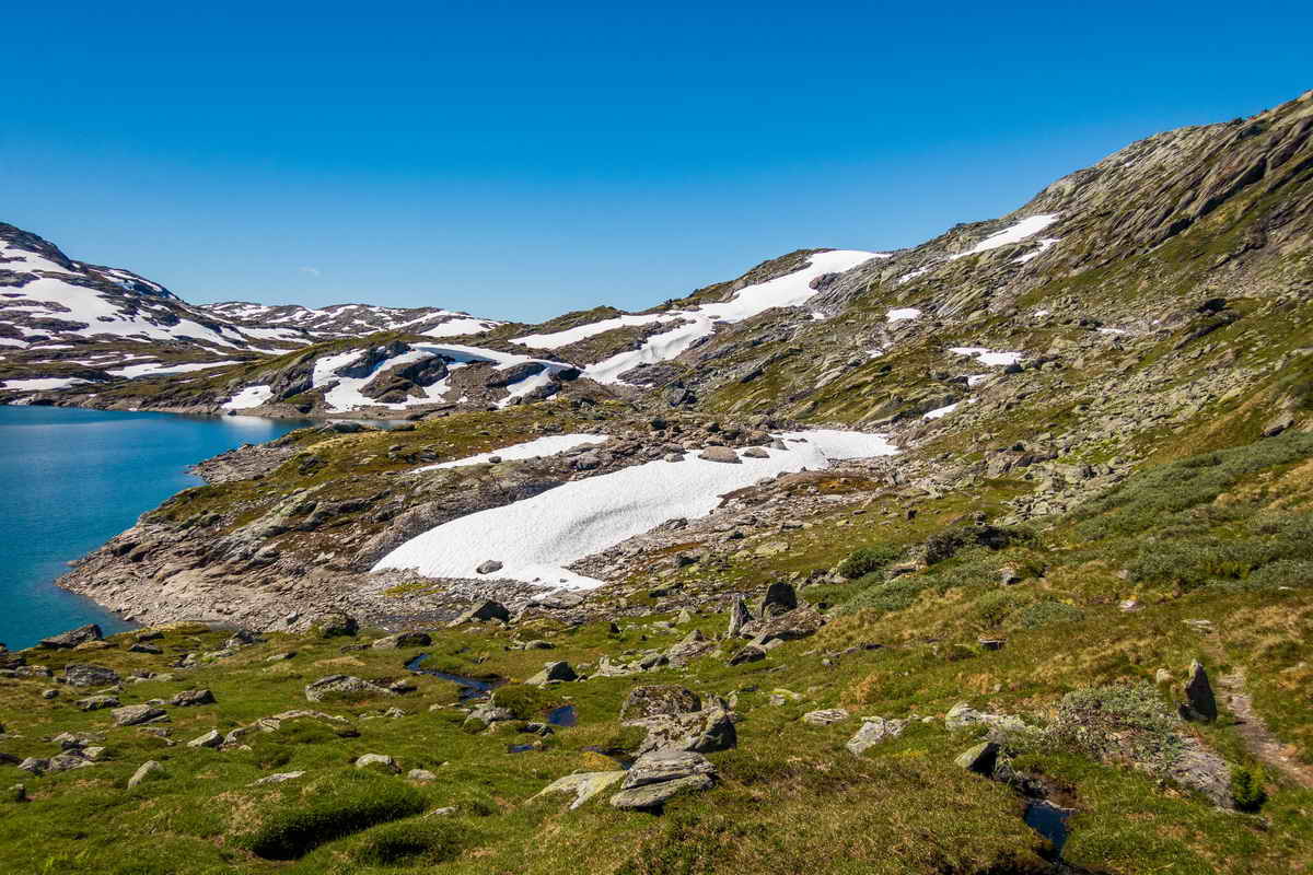 Har kommet ned til Gravdalsvatenet og ser tilbake.