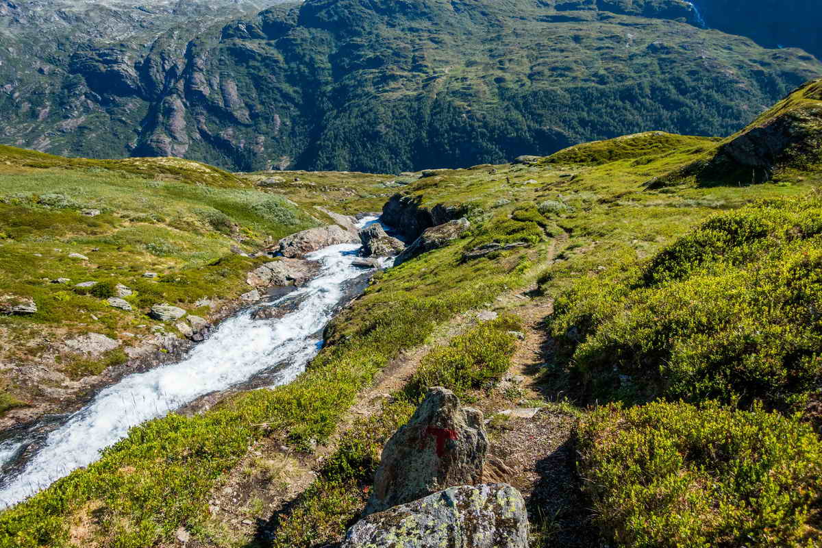 Nærmer meg Austra og stien ned til veien til Skjolden.