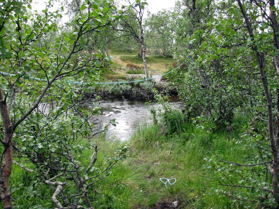 Her måtte jeg ta av støvlene og brette buksene opp til knærne. Det var forferdelig mye mygg her