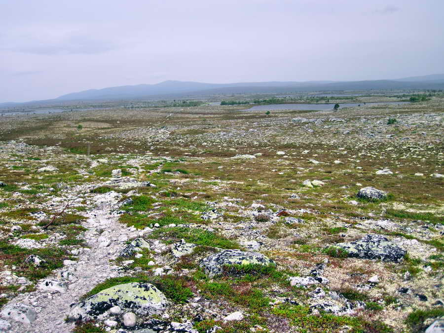 og da hun våknet hadde begynt å regne. Hun var på vei nedover til en hytte