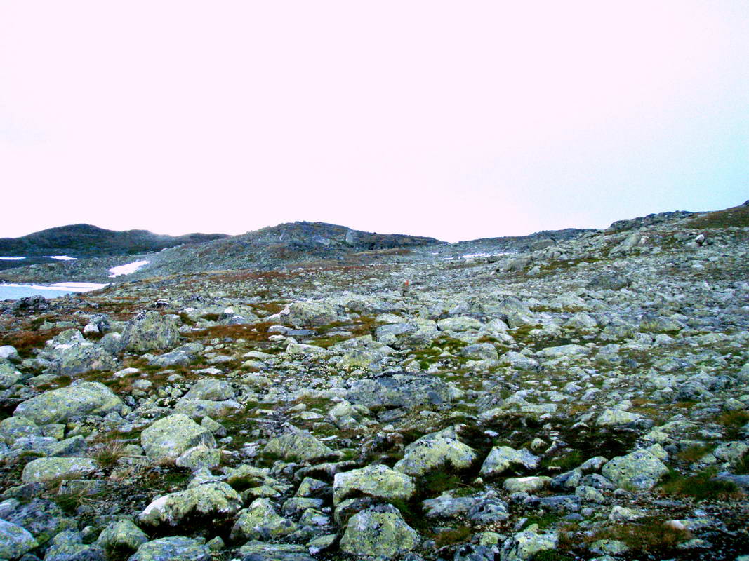 Fant slepa igjen og kunne gå videre. Her var det bare stein på stein den første timen.