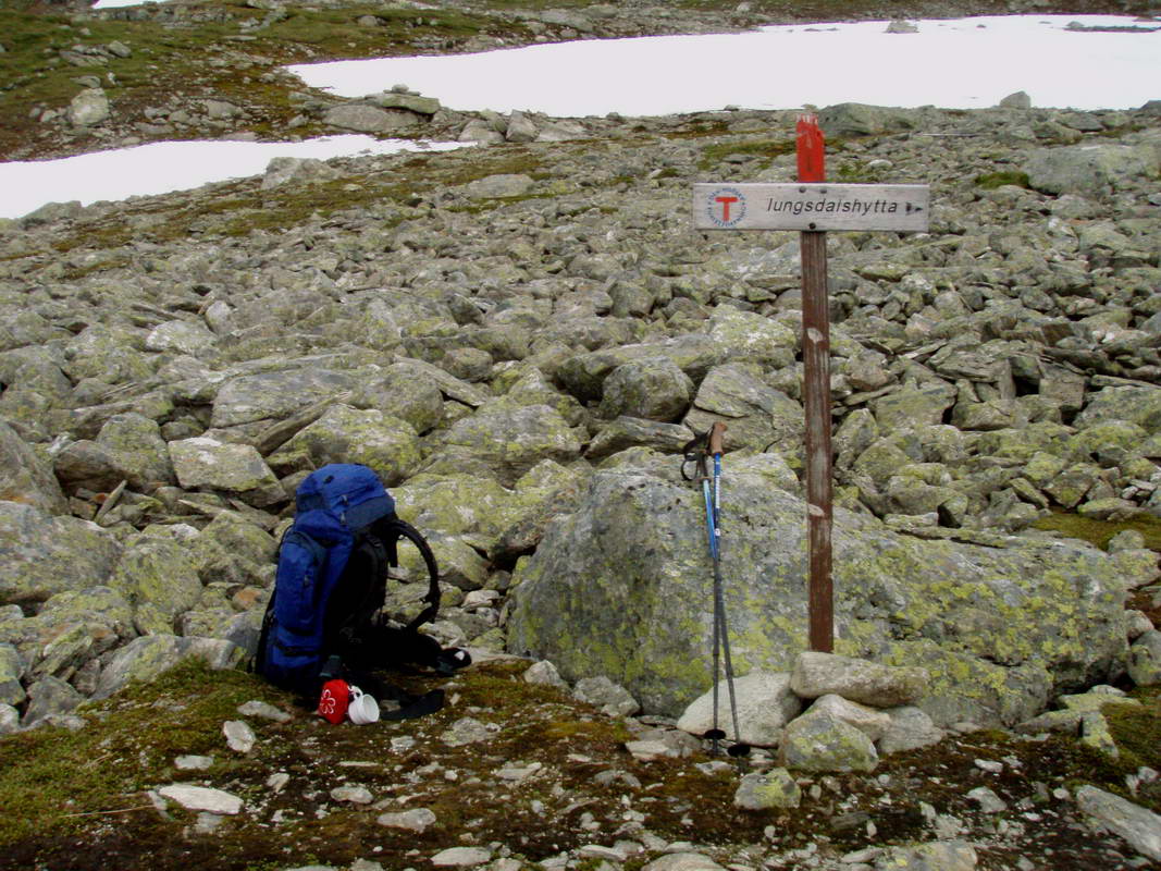 Her har jeg en rast og spiser matpakken min rett ovenfor Volavatnet.