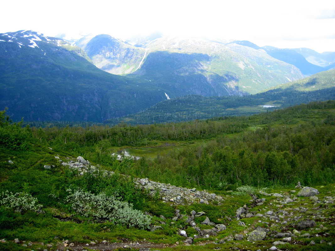 Står på Markaskardet og ser ned mot Vetismorki og Ingjerbu. Stølsmaradalen i bakgrunnen.
