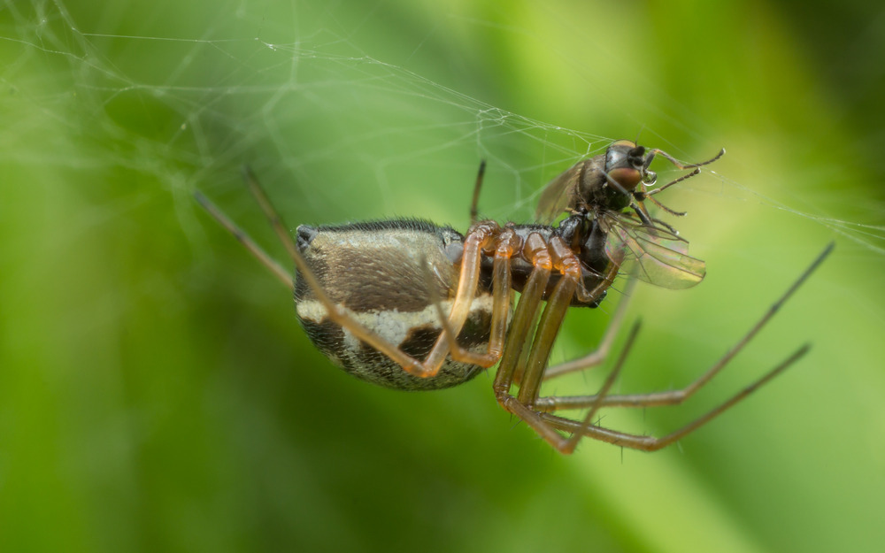 Edderkopp som dreper 2mm lang Stråflue flue (Chloropidae Oscinella).