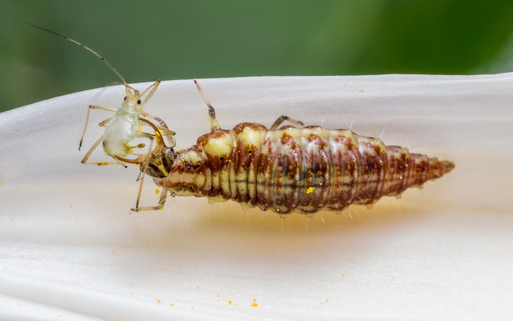 Ikke alle insekter er pene denne ser ut som et Monster. Insektet er trolig en larve til en Bladlusløve.