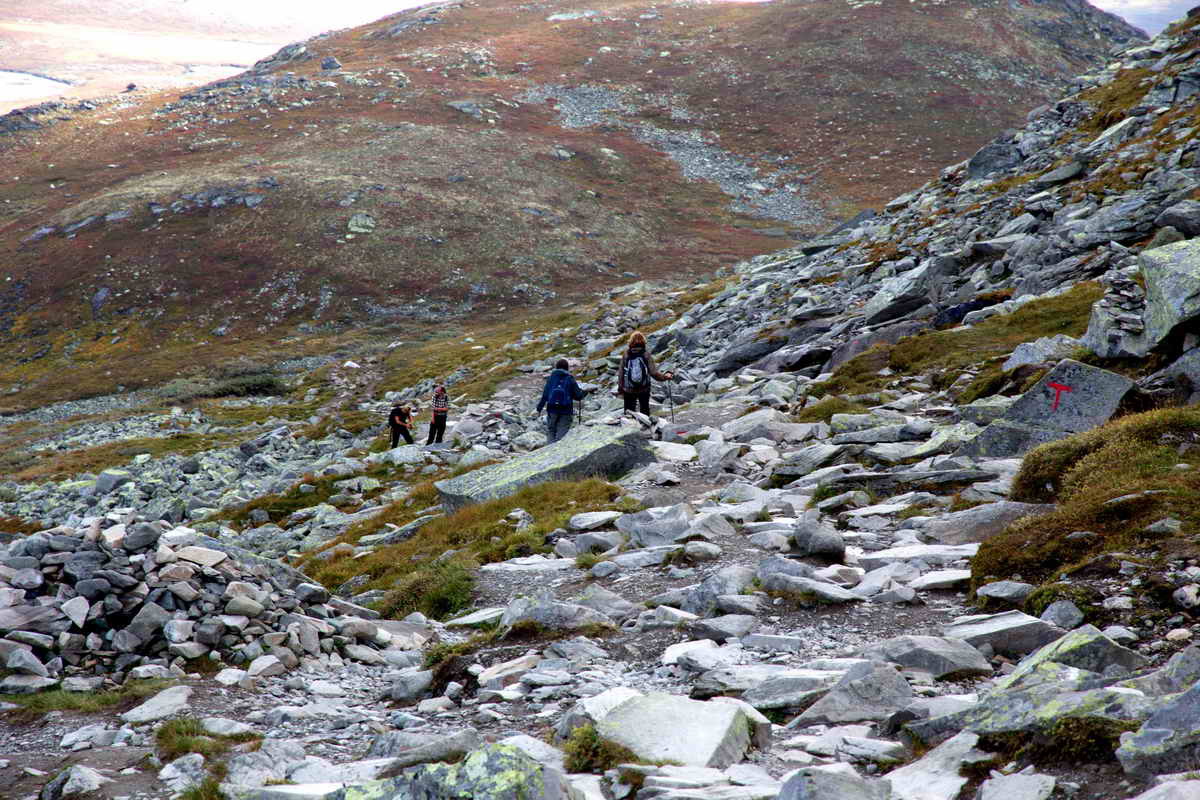 Looking back. There are people on the way both upwards and downwards.