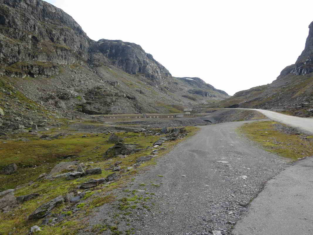 Here we are at Dyrskar the old road and see a concrete culvert with ventilation and escape routes for Haukeliseter tunnel